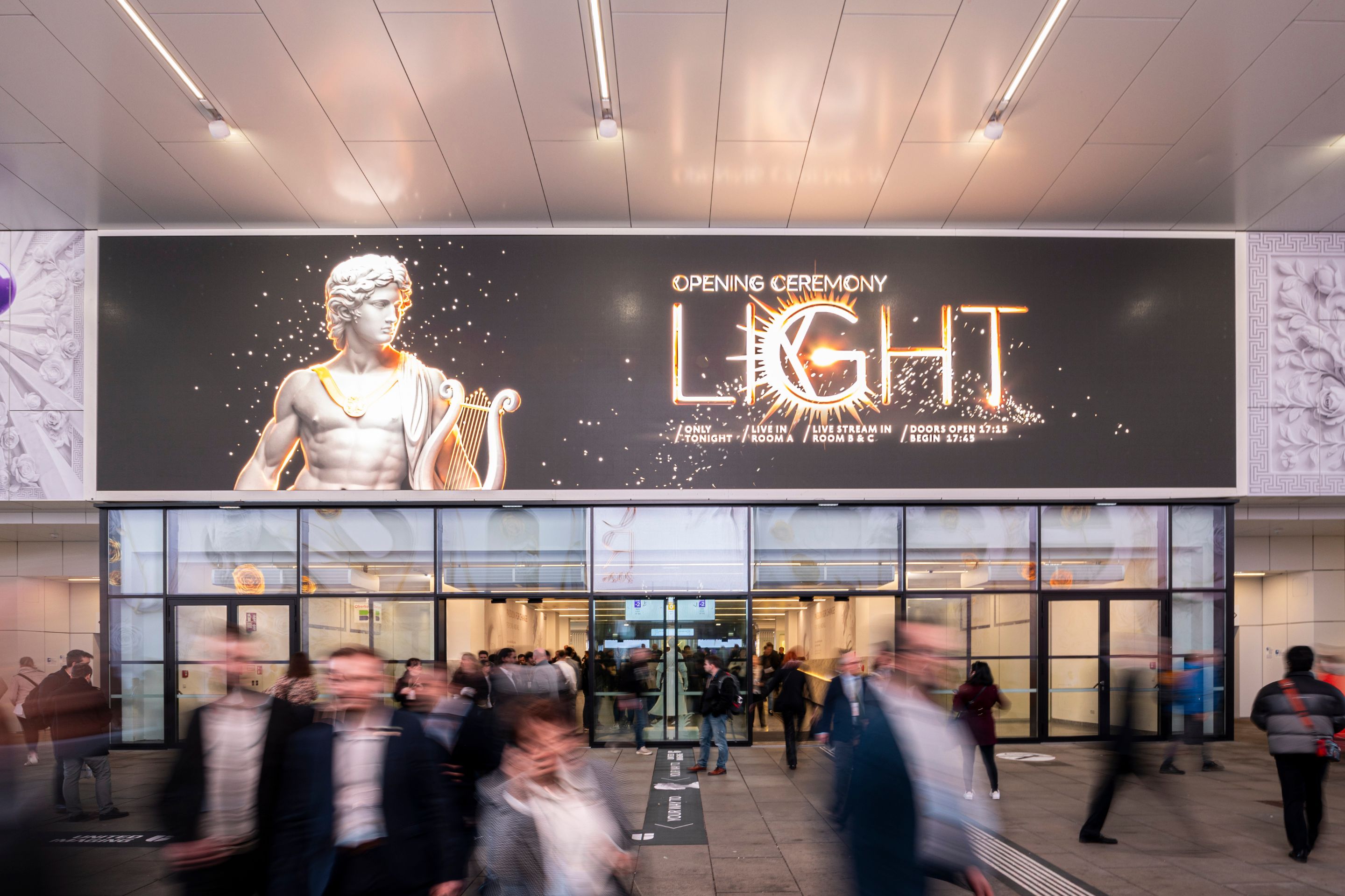 Bereits der Auftakt setzte ein starkes Signal: Die spektakuläre Opening Ceremony „LIGHT“ bot ein unvergessliches Erlebnis mit Live-Performances international renommierter Künstler:innen und inszenierte das Kongressmotto visuell und dramaturgisch, während die Plenary Lectures wissenschaftliche Spitzenforschung auf großer Bühne sichtbar machten. Ein zentrales Element der räumlichen Dramaturgie war die polySTAGE in der Eingangshalle. Die 52 LED-Paneele der Installation sowie zahlreiche weitere LED-Flächen fungierten als prägnanter visueller Ankerpunkt und prägten die Inszenierung im zentralen Ankommensbereich des Kongresses.