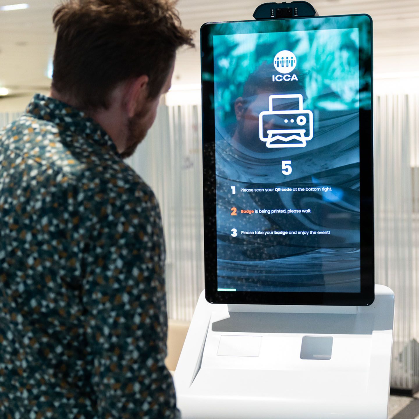 Gäste können sich selbst am Terminal oder via QR-Code registrieren. Das Modul zeigt den Namen und ggf. das Firmenlogo auf der polySTAGE und sorgt für einen schnellen, kontaktlosen Check-in.