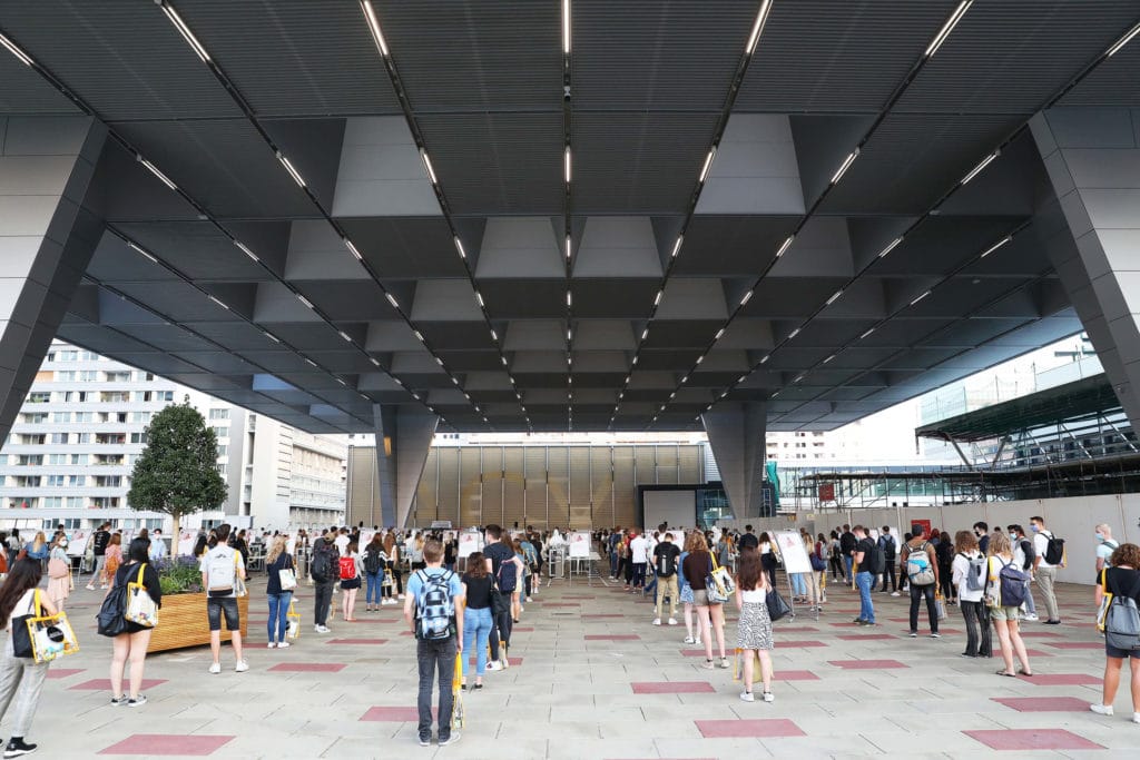 Traditionally, the first lecture for the popular business administration course at the Vienna University of Economics and Business is held in Hall A at the Austria Center Vienna. “We want to give first-semester students the chance to experience the flair of university learning at a large-scale kick off event once again this year, but also in compliance with strict hygiene standards,” Hanappi-Egger said. For the introductory business administration lecture, the students are split into two groups with around 1,000 participants in each. “To ensure that testing takes as little time as possible, we have set up numerous lanes on the covered main square outside the venue. Once the swab has been taken by a medical professional, students can complete most of the remaining steps in just a few minutes on their own and enter the building right away if they produce a negative result,” said Baumann-Söllner. Tests are completely anonymous. The congress center is covering the majority of the costs of the pilot project with support from the university.
