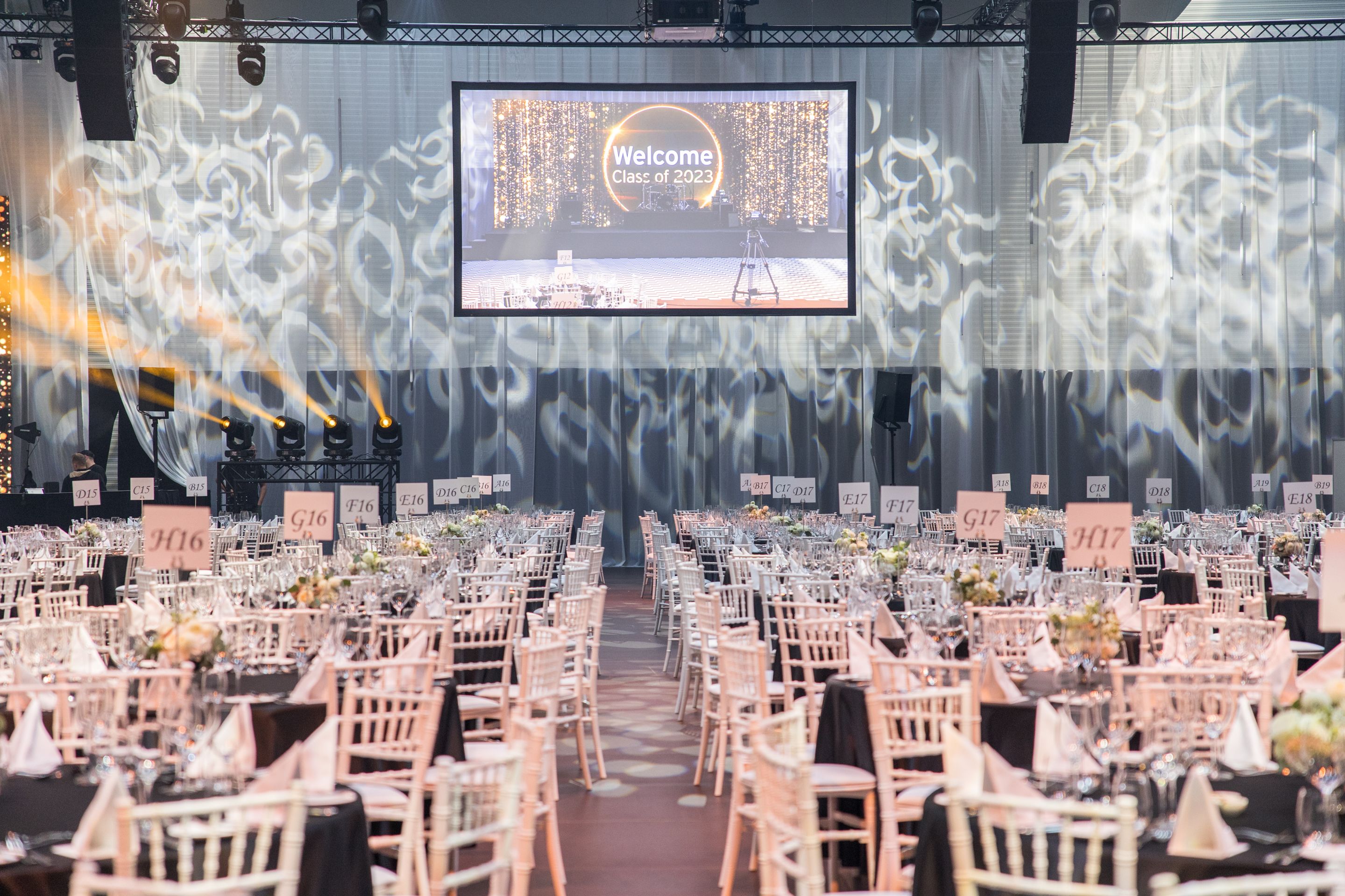 Inspire participants and guide them through the event location. Use our digital screens for wayfinding, timetables, or shows. The highlight: the versatile LED installation in the entrance hall – the polySTAGE.